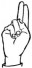 На ћирилици написано БУДИМИР ДЕБЕЉАК састоји се из 14 слова [?]. Исписано ћириличном једноручном азбуком за глувонеме: